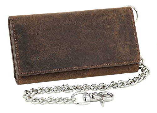 -. Title : Mens J&M Leather 7" Inch RFID Blocking Leather Trucker Biker 21 Pocket Long Trifold Chain Wallet