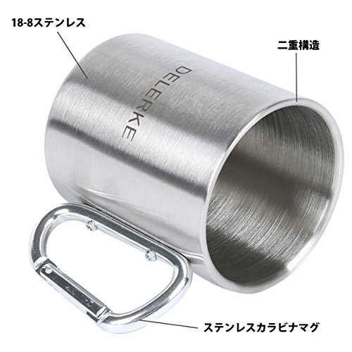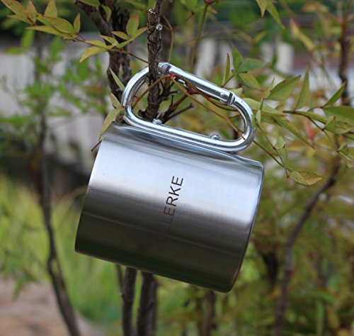 DELERKE 카라비너 핸들 컵 스테인레스 캠프 머그 등산 커피 맥주 아웃도어 스포츠 (300ml)