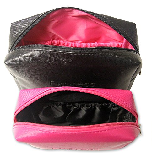 Makeup Bag 2pcs Large Black and Small Pink Cosmetic Bag Case, Toiletry Pouch, Jewelry Organizer Purse perfect for Brush Holder Make Up Tools Travel, Vacation, School. Get your Best Beauty Gift!