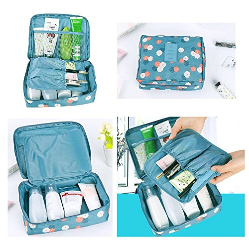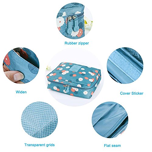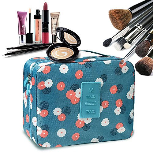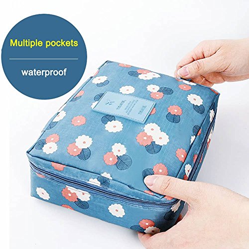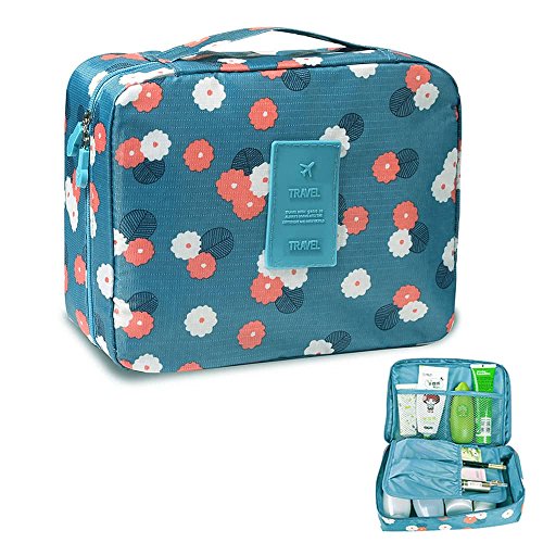 ADOGO Travel Makeup Bag Organizer Portable Waterproof Case Set Fashion Cosmetic Toiletry Bag Holder For Women and Girls Flowers Blue