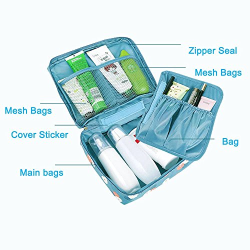 - Cosmetic Bag Function: The portable cosmetic bag have main storage bag, compartment storage bag, cover magic sticker, mesh bag, zipper seal,multiple pockets to classify your personal stuff.
