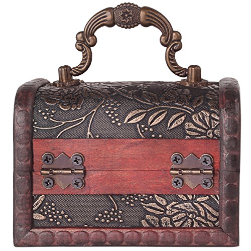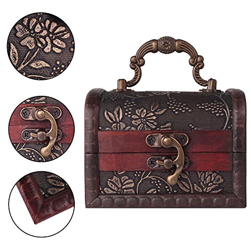 Decorative Vintage Jewelry Treasure Chest Box, Wooden Trinket Box Keepsake Gift Case With Handle