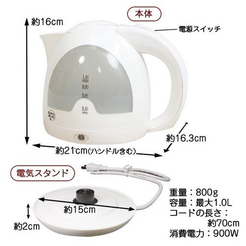 심플 인데 확실히 사용할 수있는 편리한이다주전자입니다. 【상품 상세】 세트내용:주전자본체,전기 스탠드크기(약):본체 만 폭21×(길이)깊이16.3×높이16cm 전기 스탠드 포함한 폭21×(길이)깊이16.3×높이18cm 중량:800g 코드의 길이:약70cm 정격전압:100V 50/60GHz 소비전력:900W 산지:중국 우량품 반품 불가