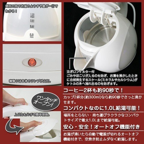 장소를 잡지 않는 한쪽 손으로 운반할 수 있는 콤팩트크기나와 최대1.0L온수 공급 가능