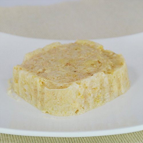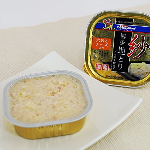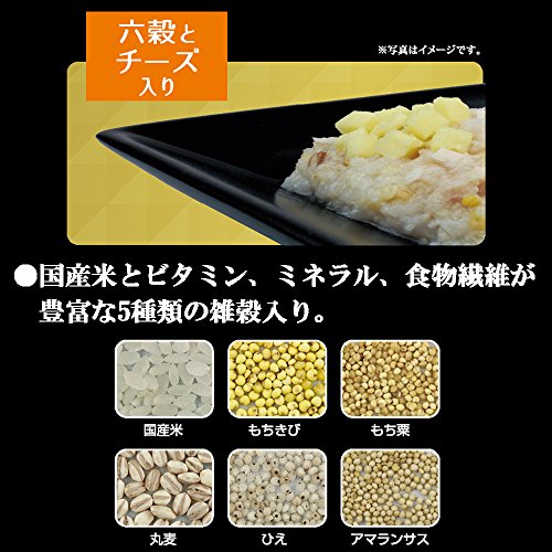 原材料:肉類(はかた地どり胸肉、チキンエキス等)、穀類(白米、もちきび、もち粟、丸麦、ひえ、アマランサス)、チ‐ズ、増粘多糖類、ミネラル類(カリウム)、酸化防止剤(EDTA‐Ca・Na)