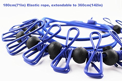 - 4. Elastic cable with tiled length of 180cm, could be extended to 360cm, hang as much clothes as you want.