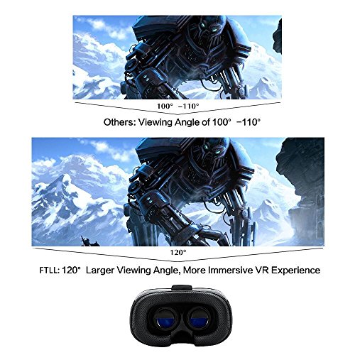 -. Feature : FTLL Wide Compatibility : Comfortably fits iPhones, Android phones, Windows phones with a screen size within 4.0 - 6.0 inches / Compared to similar products, our VR is advanced in its quality through using Japanese manufactured PMMA material under Optical standards. The 42mm diameter lens is noticeably superior than the 35mm lens. / The thick foam face cushion ensures hours of comfort and the faux leather fabric is easily wiped cleaned after use. 3-Way Padded Head Straps with Wide elastic straps, soft back panel and side adjust-ment points keep positioned correctly for maximum comfort during extended use. / Stunning 360 degree panoramas will surround you as you turn and look all around. Use your eyes to control your movements and play games as if you are in the scene. Experience a new reality! / Virtual Reality Apps : Check out these VR apps in Google Play store, Apple App store, and immerse in the exciting world of VR!