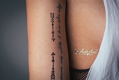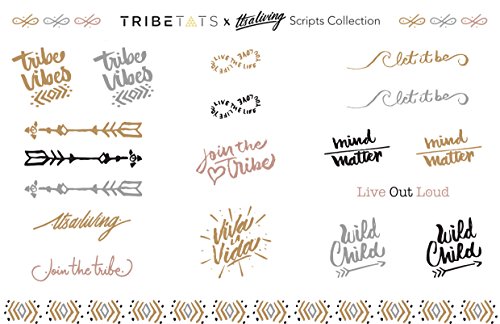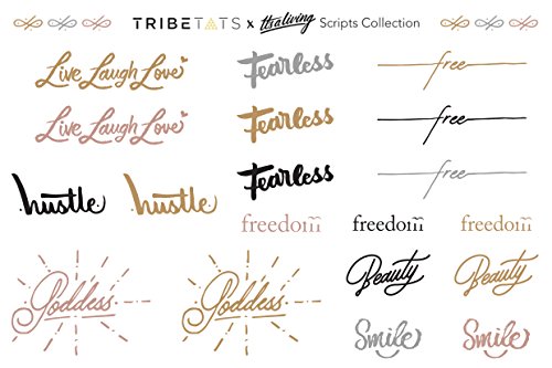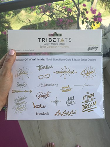 -. Feature : ✔ AMAZON-ONLY PROMOTION - LIMITED TIME ONLY: Get $5 off this item with code 5INSPIRE at checkout. 100% satisfaction guarantee. / ✔ HIGHEST QUALITY FLASH TATTOOS AVAILABLE: Premium, long lasting adhesive stays up to an entire week; waterproof and sweatproof. Non-toxic and safe to use. / ✔ CHIC, INTRICATE, METALLIC DESIGNS. Created exclusively for TribeTatsTM by lettering designer It's A Living in New York City. Includes gold, silver, black and rose gold versions of favorite inspirational sayings tattoos: Mind over Matter, Hustle, Shine, Free, It Was All A Dream, Goddess and more. Sexy designs for women, girls and men alike. / ✔ EASY TO APPLY AND REMOVE - NO SCISSORS REQUIRED: Only metallic tattoo brand on Amazon with fold-and-tear sheets for easy application and a metallic tattoo remover to take tattoos off your skin hassle free (sold separately). Avoid the pain of needles and the commitment of a tattoo for life. / ✔ SHIPS FROM USA: TribeTatsTM is a trademark of TribeTats LLC and sold only by authorized dealers. Beware of counterfeit product from sellers in Asia.