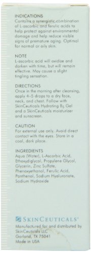 Combines 20% L-ascorbic acid (vitamin C) with Ferulic Acids to provide antioxidant and anti-aging benefits