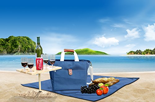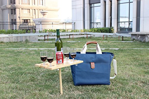 LeSac Fashion Insulated Party Cooler Bag with Wine Bottle Sections and Fold-able Outdoor Bamboo Wine Picnic Table for Outdoor Concerts, Beach, Picnic Adventures. Perfect Holiday Gift for Everyone