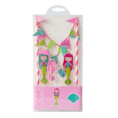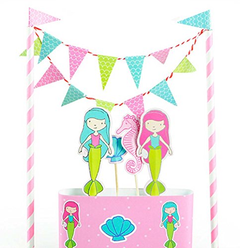 Mermaid Seahorse Shell Cake Banner Topper Kits Birthday Decorations Baby Shower Party Favors Supplies