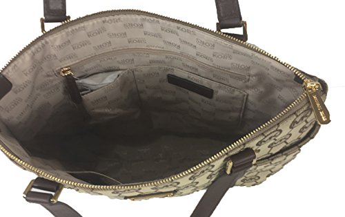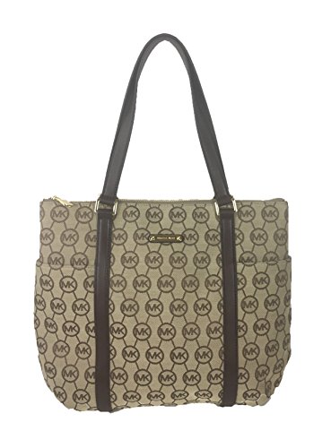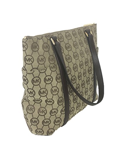 -. Binding : Apparel -. Brand : -. Color : Beige/Ebony/Mocha -. Department : womens -. EAN : 0190049125083 -. Feature : Top zip tote bag in jet set logo jacquard canvas with genuine leather trim / Front engraved logo plate. Custom golden hardware. / Side slip pockets. Top handles, 9" drop. Metal feet. / Zip closure. Lined. Interior zip and four slip pockets. / 14" W x 13" H x 4" D -. Model : 38S6XTTT3Q -. PackageQuantity : 1 -. ProductGroup : Apparel -. ProductTypeName : ACCESSORY -. Size : Medium -. Title : Jet Set Jacquard Logo Top Zip Tote, Beige/Ebony/Mocha -. UPC : 190049125083