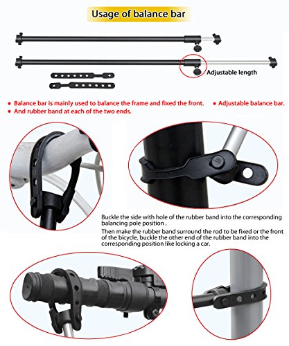 Adjustable handlebar rod stabilizes the front wheel.