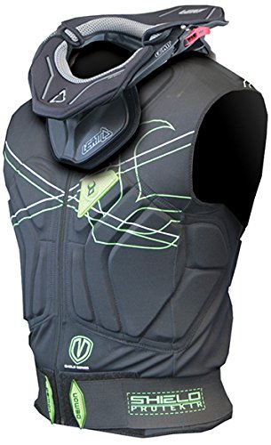 -. Feature : Material: [body] polyester, Lycra, [underarm] synthetic mesh, [padding] Air Shield (foam), [back] polycarbonate / Closure System: hook-and-loop / Recommended Use: snowboarding, ultimate gnarnia / Protection Area: shoulder, chest, spine