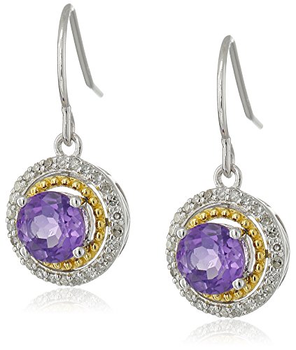 Sterling Silver with Yellow Gold Plated Amethyst and Diamond-Accented Dangle Earrings