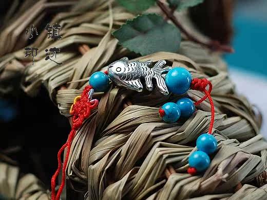 Tibetan silver fish pendant (blue)