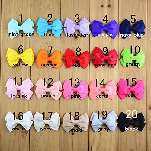 20pcs 3" Boutique Hair Bows Girls Kids Children Alligator Clip Grosgrain Ribbon Headbands 20 Color (20pcs)