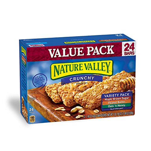 Nature Valley Granola Bars, Crunchy, Variety Pack of Oats 'n Honey, Peanut Butter, Maple Brown Sugar, 12 Pouches, 2-Bars Per Pouch (Total 24 Bars)