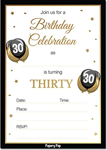 30th Birthday Invitations with Envelopes (30 Count) - 30 Thirty Year Old Anniversary Party Celebration Invites Cards