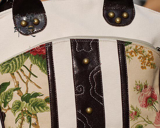 Materials: linen, cotton, copper buckles, leather strap. Belong handbag