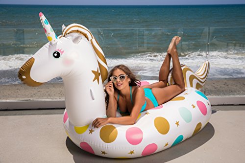 Giant Pool Float - 8 Feet Long Inflatable Unicorn Pool Float Ride-On - Kids and Adults Inflatable Animal Pool Float