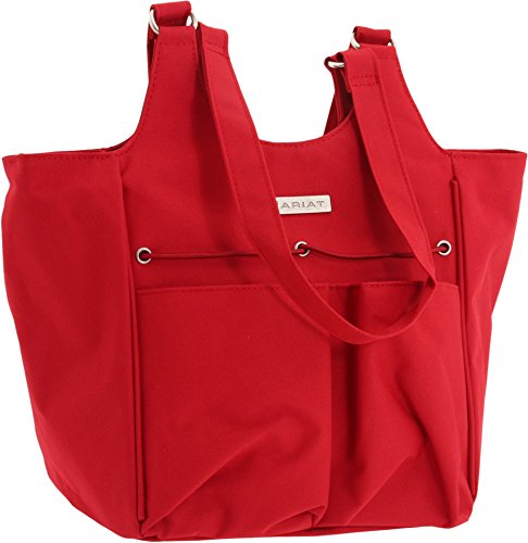For the girl who has an equestrian's heart. You will love this Ariat Mini Carry All Tote. This bag is fashionable and versatile enough for the barn or the mall. This great bag has tons of storage with a zippered compartment on the inside and outside, plus two large outside pockets that make it easy to get your items in and out. A platform bottom keeps the bag upright when you set the bag down, which keeps your items from spilling out. Made of highly durable poly canvas and featuring dual handles, it is both practical and stylish. Measures 9'' x 10'' x 7''. Material: Polyester.Feature