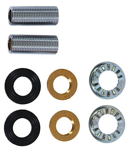 - Kit includes: (2) 1/2" supply nipples, (2) retainer nuts, (2) lock washers, (2) rubber washers