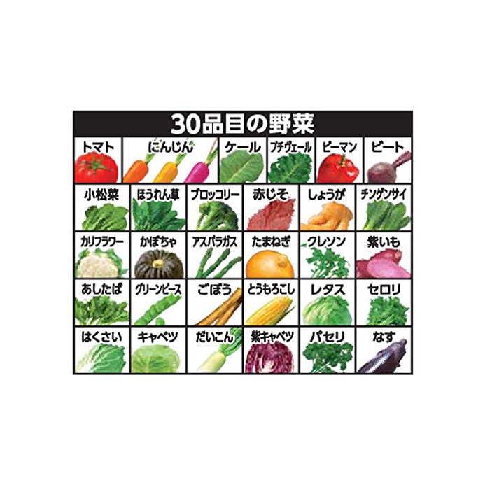 원재료:야채(토마토,(당근)인삼,K《루》,《메캬베츠》(쁘띠 베일)고, 적피망,시금치,《모로헤이야》,브로콜리,양상추,샐러리,하 # 것이지만,자양배추,빨강 하 #고, 읽 #고, 친 겐 코뿔소,콜리플라워,《구레손》,파슬리,호박,아스파라거스,타마 파,비트,무우,평지의 변종,보라색 있도,아 했으면,서는 냄새가 나다,가지,그린 피스,# 것이다)고, 레몬 과즙
