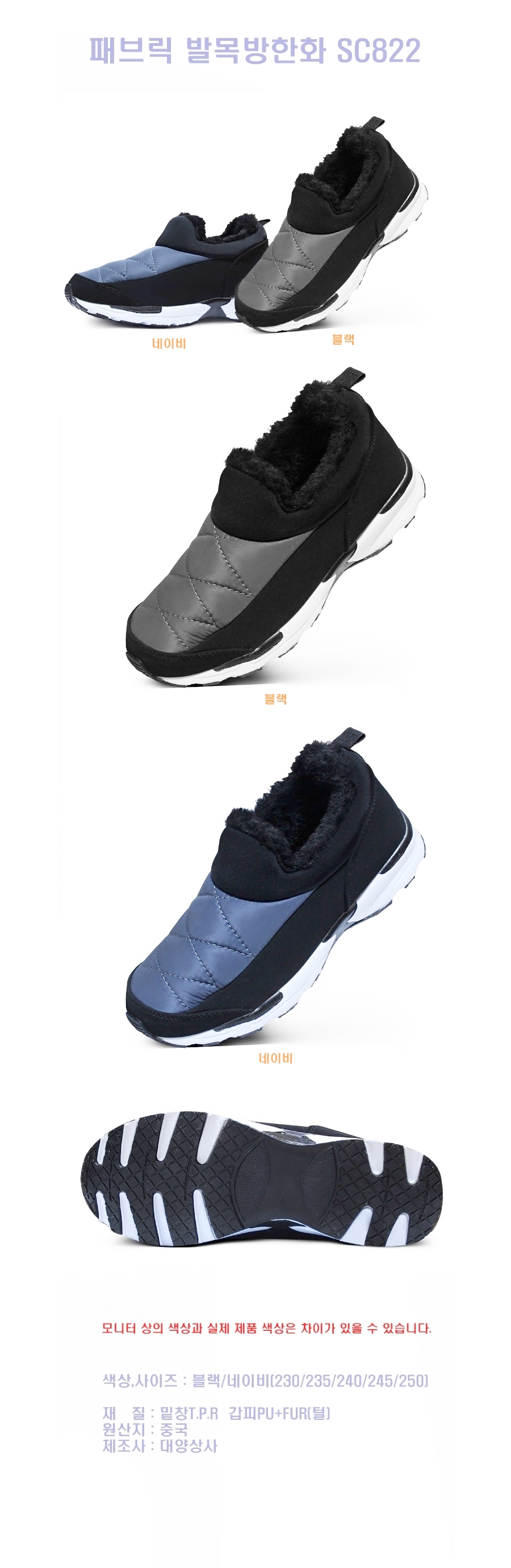 - 품명 및 모델명패브릭 발목방한화 SC822