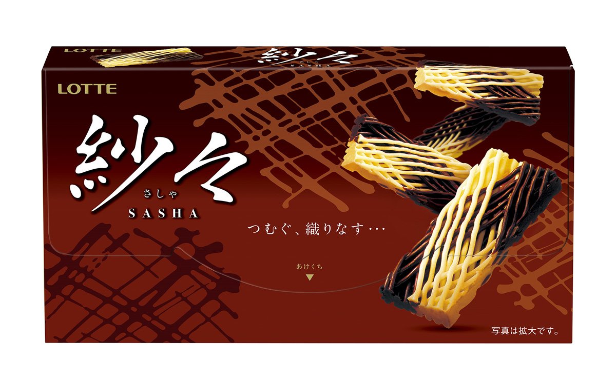 Delicate appearance like silk fabric born by carefully weaving two types of thin linear chocolate, delicate teeth made with crispness, mouth touch melting like unrolling in mouth.