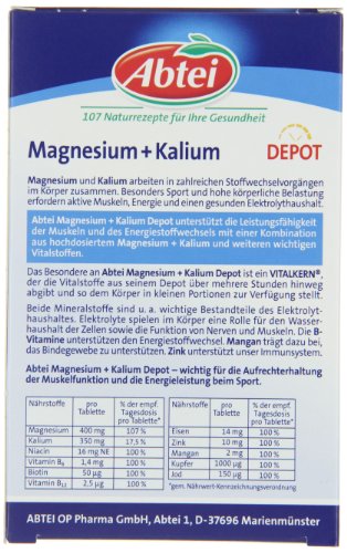 Hochdosiert mit 400 mg Magnesium + 350 mg Kalium + 10 mg Zink + 14 mg Eisen + weiteren wichtigen Vitalstoffen.