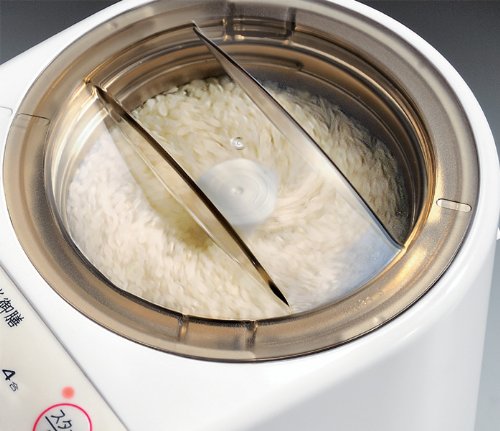The upgrade of a motor realizes speed rice cleaning.;Twinbird Polished Rice Machine Compact White Mr-e500w