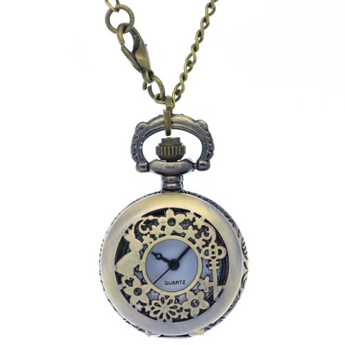 -. Title : FobTime Cute Hollow Carved Rabbit Key Flower Pattern Pocket Watch Casual Vintage Rabbit Cutout Watch