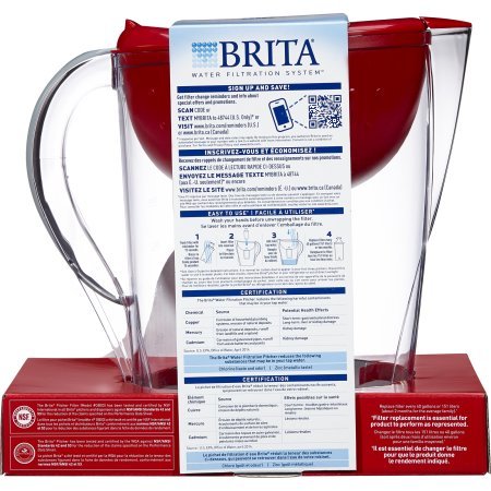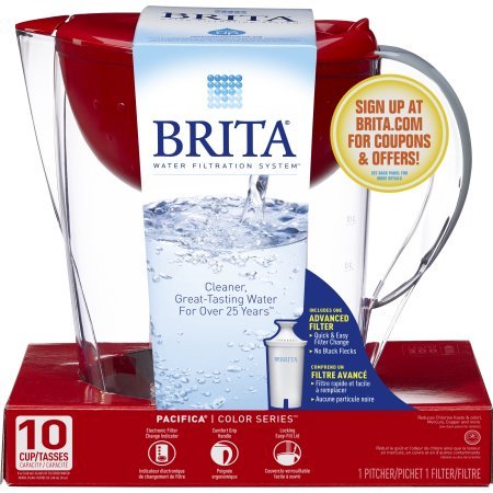 -. Title : Brita 10 Cup Pacifica BPA Free Water Pitcher with 1 Filter, Red