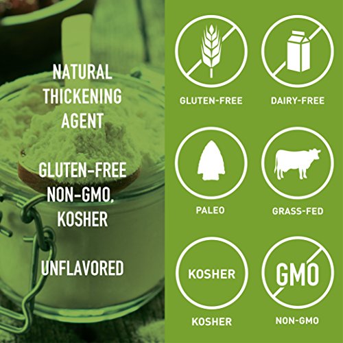 Gelatin is the perfect natural thickening agent for baked goods and gummies! Gelatin is incredibly versatile. You can mix it into hot beverages, soups or foods simply to add the health benefits of Gelatin, or, if you'd prefer it to "gel up", you can mix it with cold liquids. This is useful for making gummies, custards, and other gelatin type desserts! This Gelatin is one of my absolute favorite supplements and I use it nearly every day! There are a lot of different Gelatin choices out there, and it can be really difficult to find a clean, high-quality source. That's why I custom formulated my own Gelatin powder. It's sourced from grass-fed, pasture-raised beef, and is also 100% non-GMO and kosher! Gelatin comes from Collagen, and Collagen is the most important and abundant structural protein in your body. Think of collagen as the 'glue' that hold your body together. Your skin, bones, connective tissue, cartilage, and joints all depend on ample collagen to be healthy, strong and flexible. Gelatin is an excellent source of the amino acids found in Collagen! Most of us cannot get enough Gelatin and Collagen from our diets alone. Even those of us eating a clean, healthy, paleo-inspired diet have trouble getting as much Gelatin and Collagen as our distant ancestors did, let alone enough for optimal health. Unless you've got an 8 quart crock pot simmering bone broth from grass-fed, antibiotic-free cow bones all day every day, then you are very likely in need of a high-quality Collagen or Gelatin supplement! Gelatin is fantastic for those concerned with Leaky Gut. Gelatin is full of amino acids and peptides that help maintain and promote optimal gut lining health. The cells lining your intestinal tract absolutely love this stuff, and so many of my patients report greater digestive comfort after using it.Feature