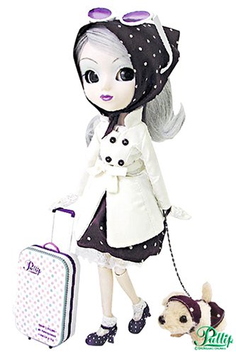 Draw a carry case and afternoon to take a walk on a dog in a matching matching dress.