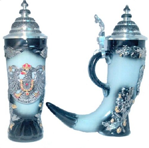 -. Feature : この美しいHornファジー・ゼラー&ドイツで手作りビールジョッキ生まれました。 / この魅力的なストーンウェア陶器製は、ピューターの蓋。 / これはa.75リットルジョッキです。販売されます。 / 高約10.75インチ27.3 cmは付属していません。 / このドイツビールジョッキは、ピューターEAGLEの色は赤と金の手描きアクセントになっています。ピューターのワシのもに「ドイツ」を参照してください。シルバーとゴールドで手描きしたホーンの側面もには突起レリーフのアクセントカラーが表示されます。