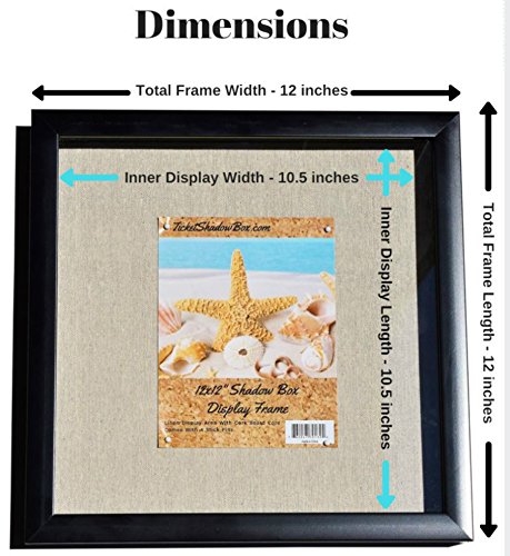 TicketShadowBox 12x12” Display Shadow Box Frame with Linen Background - Ready To Hang Shadowbox Picture Frame - Easy