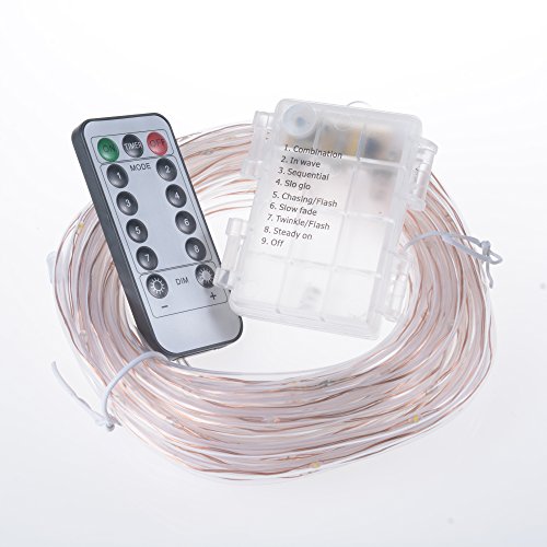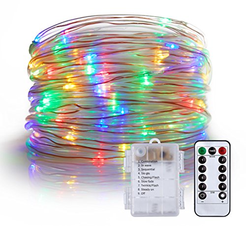 LXS Rope Lights Battery Powered Waterproof 33ft 100 LED with Remote Timer, 8 Modes Dimmable Fairy Lights for Palm Tree Decor,Fencing Decor and Christmas Tree Decoration(Multi Color)