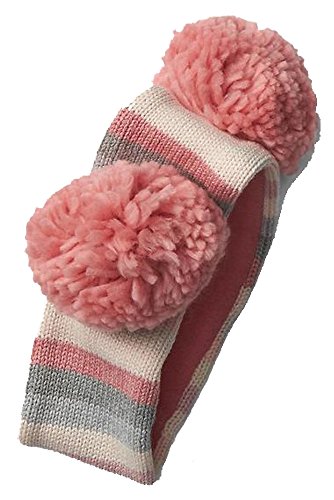 (BabyGap)/Accessories/Cold Weather Accessories/DIRECT FROM USA/Baby Gap Girls Pink Gray Crazy Stripe Pom Pom Fleece Lined Headband S/M