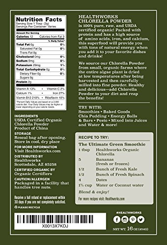 Our Healthworks 100% USDA Certified Organic Chlorella Powder is raw, pure, all-natural, vegan, gluten-free and non-GMO, making it a great addition to any lifestyle.