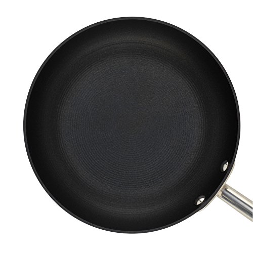 Professional heavy guage hard anodized construction provides fast, even heating and exceptional durability. TOTAL NONSTICK system features High-Low wave technology coupled with the most advanced nonstick surface to offer extraordinary food relase and lifelong durability. Advanced nonstick inside and out ensures clean-up is quick and easy. Contemporary, stylish double riveted stainless steel with silicone handles for a secure, slip-free grasp. Oven safe to 400-degrees F.Feature