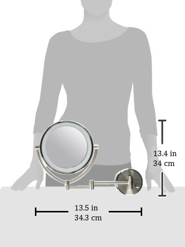 9.5 inch wallmount makeup mirror with detailed curvature for a distortion free optical quality mirror; Diffused ring light that minimizes shadow