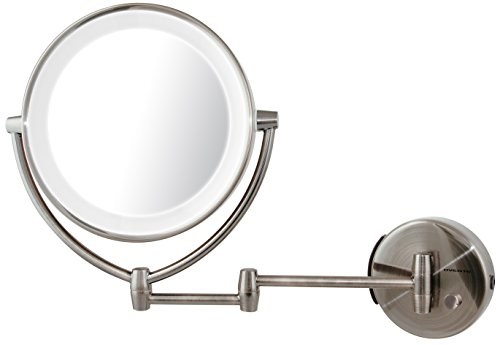 Ovente LED Lighted Wall Mount Makeup Mirror, 1x/10x Magnification, 9.5 inch, Nickel Brushed