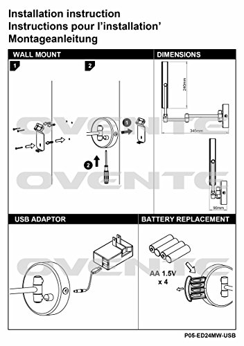 Dual Power/Voltage: 110/220V Universal 2-Port USB Adapter (included), 4x AA Batteries (not included) – for a cordless and clutter free mirror