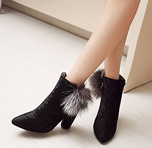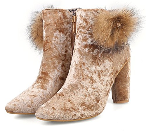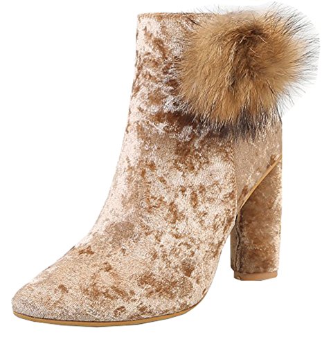 Binding : Apparel Product Description A pair of suitable high heel booties means a lot to a lady. It can not only prevent her feet from the harm from the whether, also, it can help she well display her vintage and feminine temperament. Ladies are always faced with a dilemma that they like high heel shoes because high heel shoes is elegant and can well show their feminine, however, high heel shoes are very likely to do harms to them. While, high heels would make them get tired easily and they would sprain their ankle carelessly. However, with this pair of booties you don't need to worry about that. Just as you can see, this pair of ankle booties has chunky heels and platform which make them wears very comfortable. And its lug sole can well antiskid, you don't need to worry when you step on the slippery or snowy street. Still hesitate? Its really a must-have item for you. 0