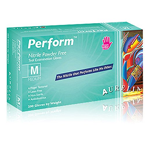 The Aurelia Perform 9239 nitrile, powder-free, disposable glove is green for high visibility and is manufactured in an FDA-inspected and ISO 9002 registered facility, and meets U.S. Department of Agriculture (USDA) federal regulations for use in food processing and handling. The glove has a palm thickness of 2.6 mils and a finger thickness of 3.6 mils and is 9.5" long from the tip of the middle finger to the edge of the beaded wrist cuff, which is 2 mils thick. Nitrile provides better elasticity than vinyl, better puncture resistance than latex or vinyl, better abrasion resistance than chloroprene, and reduces the likelihood of allergic reaction. This ambidextrous green glove is suitable for dental and medical examination applications