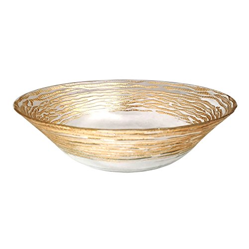 Introduce a touch of sparkle to your dinner setting with this salad bowl hand decorated with gold leaf. Ideal for contemporary dining rooms, this round glass bowl has a clear center with a gold textured rim for visual contrast.