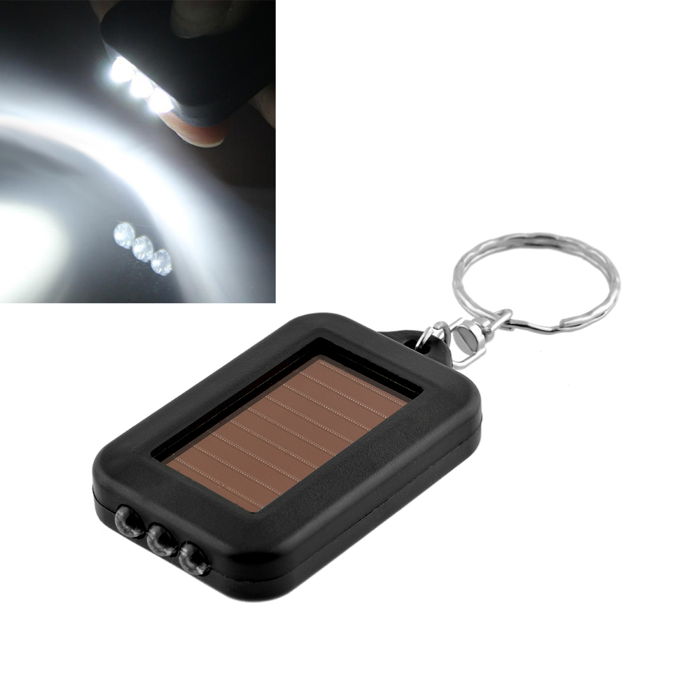 Mini Black Solar Power Rechargeable 3 LED Flashlight Keychain Torch