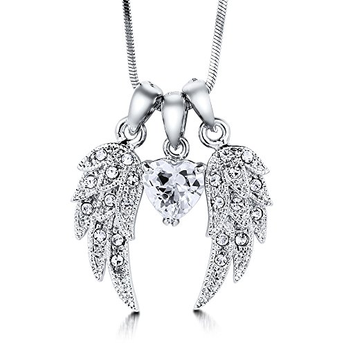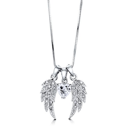 -. Title : BERRICLE Rhodium Plated Base Metal Cubic Zirconia CZ Angel Wings Fashion Pendant Necklace 18"